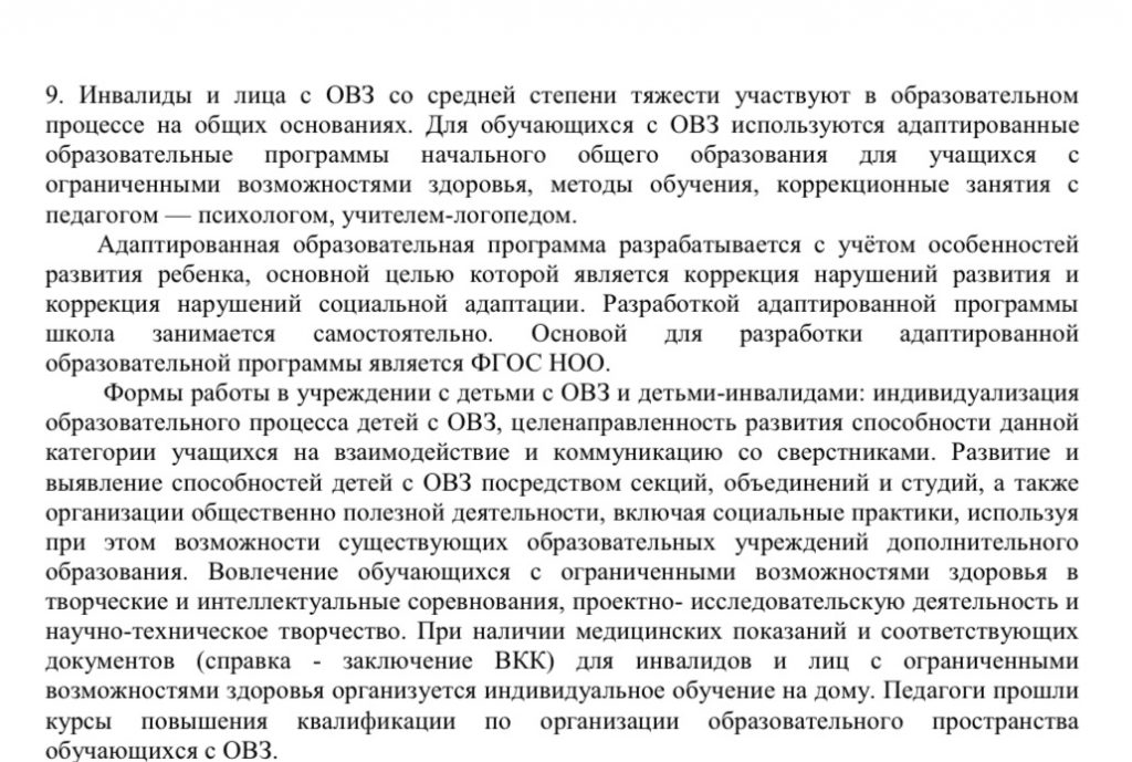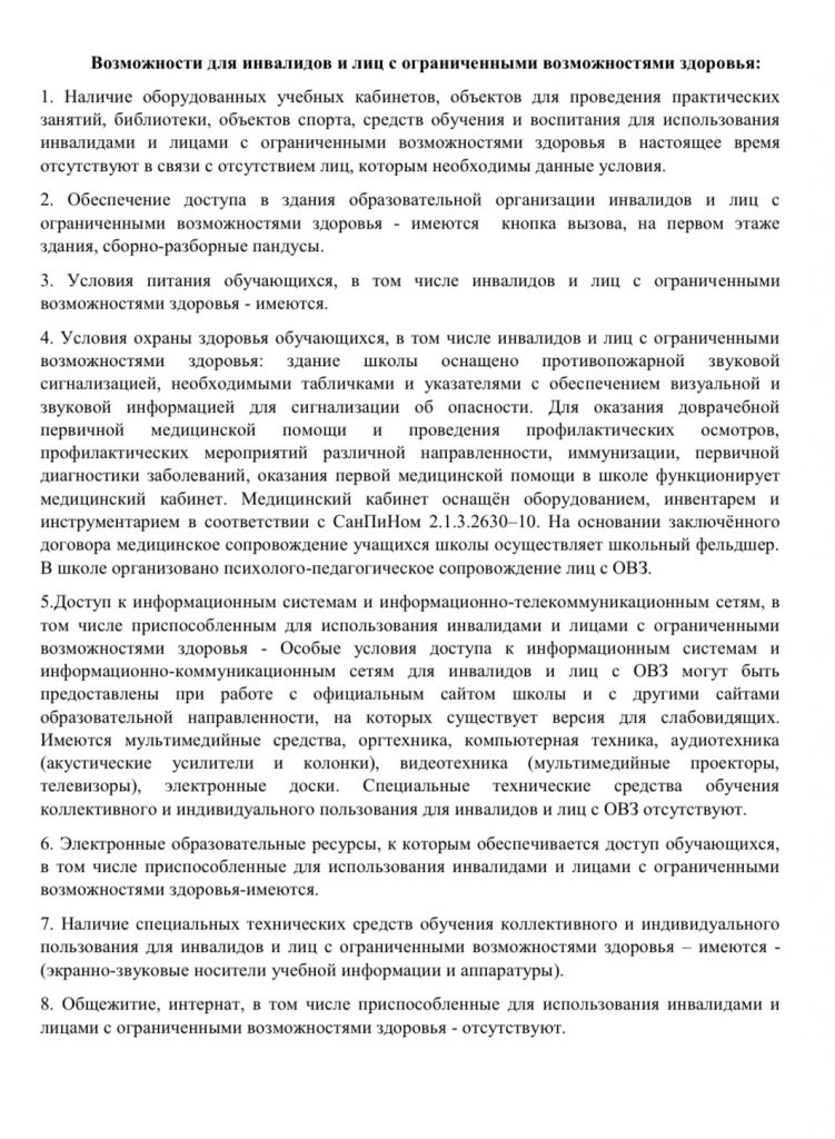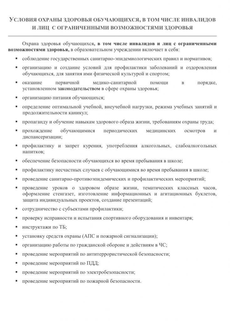 Условия питания и охраны здоровья обучающихся, в том числе инвалидов и лиц с ОВЗ