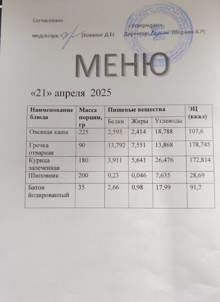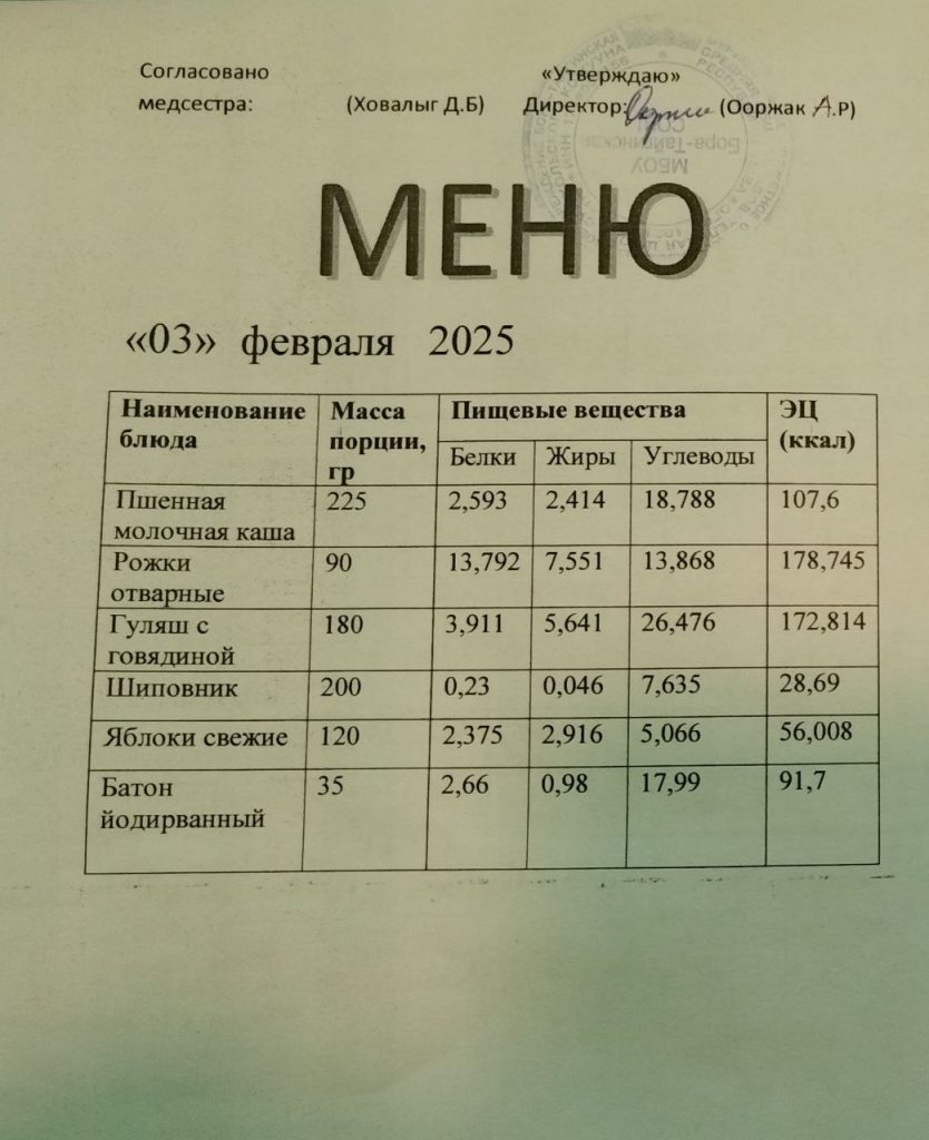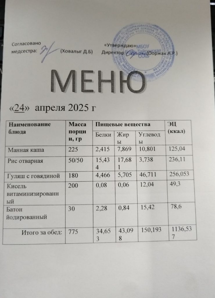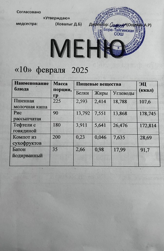 Меню 2024-2025 учебный год