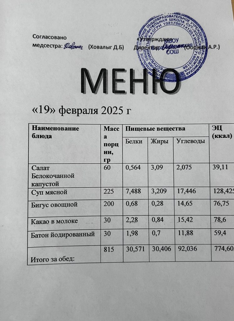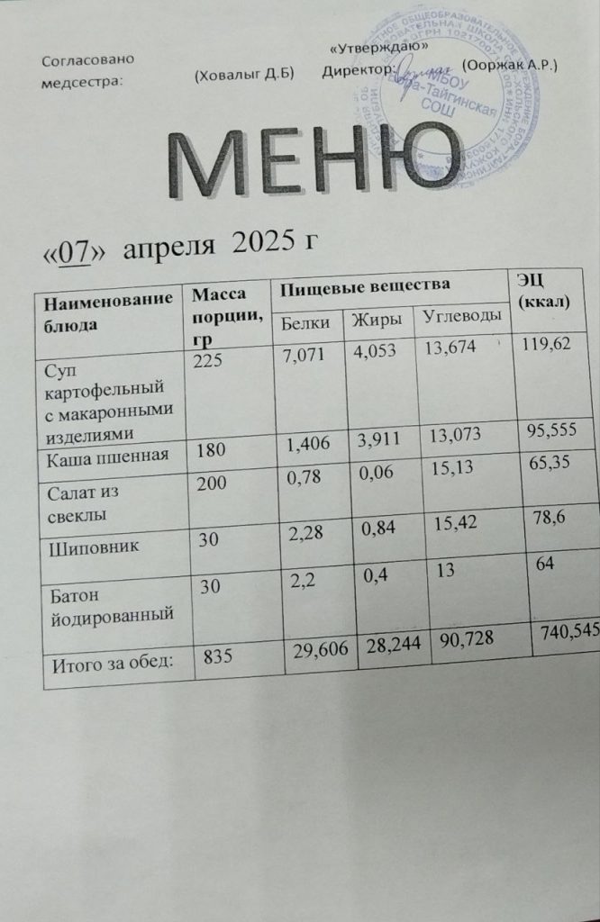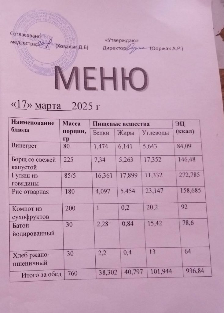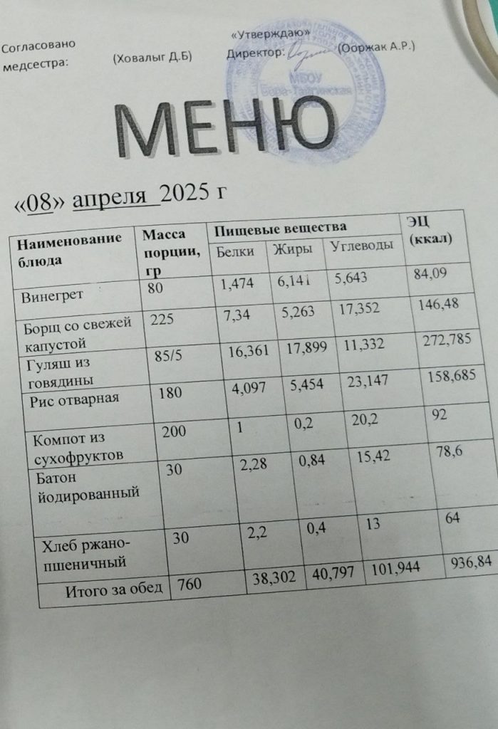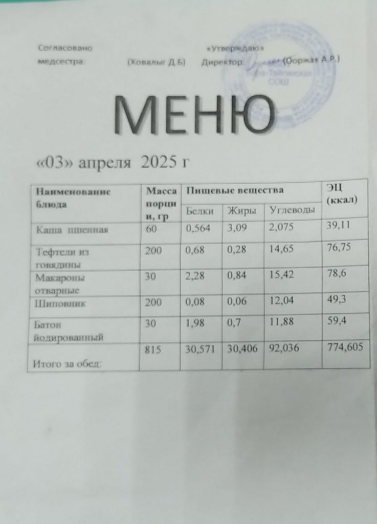 Меню 2024-2025 учебный год