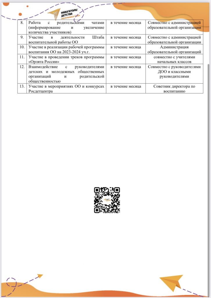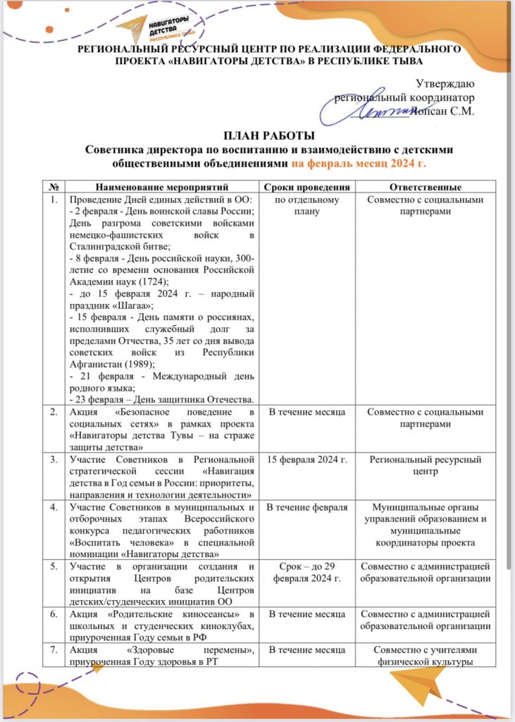 Навигаторы детства 3.0 2024 В честь международного дня школьных библиотек на базе нашей школы открыли ВДЦ «Почитай-ка» ДИ_Эксперта_31.08.2023_№_462-оСкачать План_работы_Советника_директора_по_воспитанию_на_сентябрь_2023_гСкачать Детство начинается здесь… План работы Советника директора по воспитанию к Году семьи 2024Скачать План работы на январь 2024гСкачать