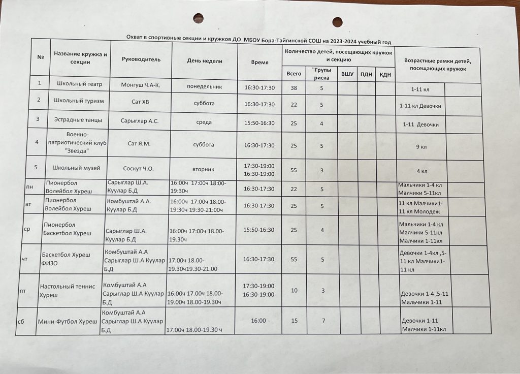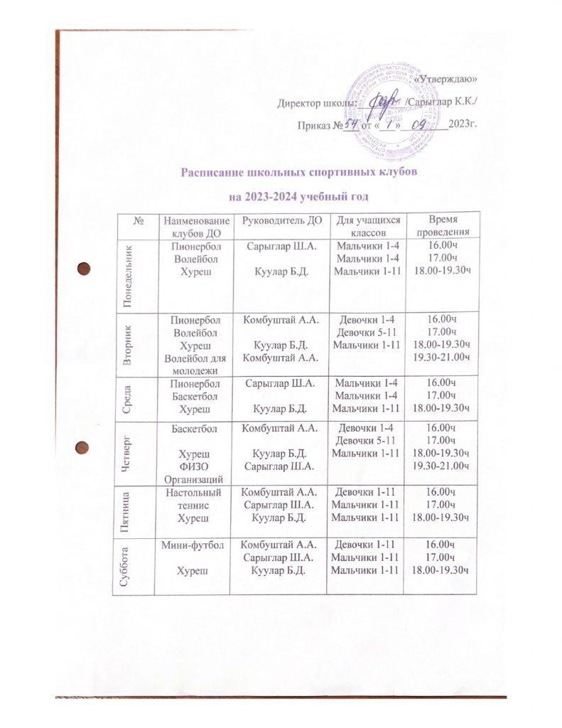 Расписание ШСК «Олимп»